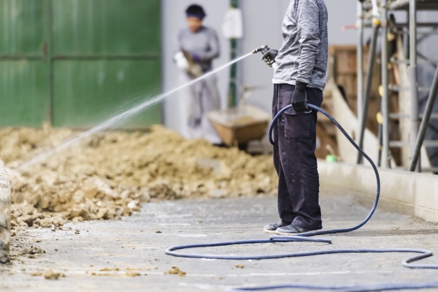 高圧洗浄機にて洗浄を行うために埃やゴミが大量に舞い上がることがあります。