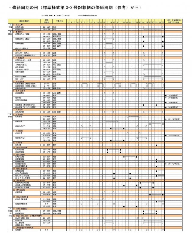 ◎修繕内容と時期の目安 |